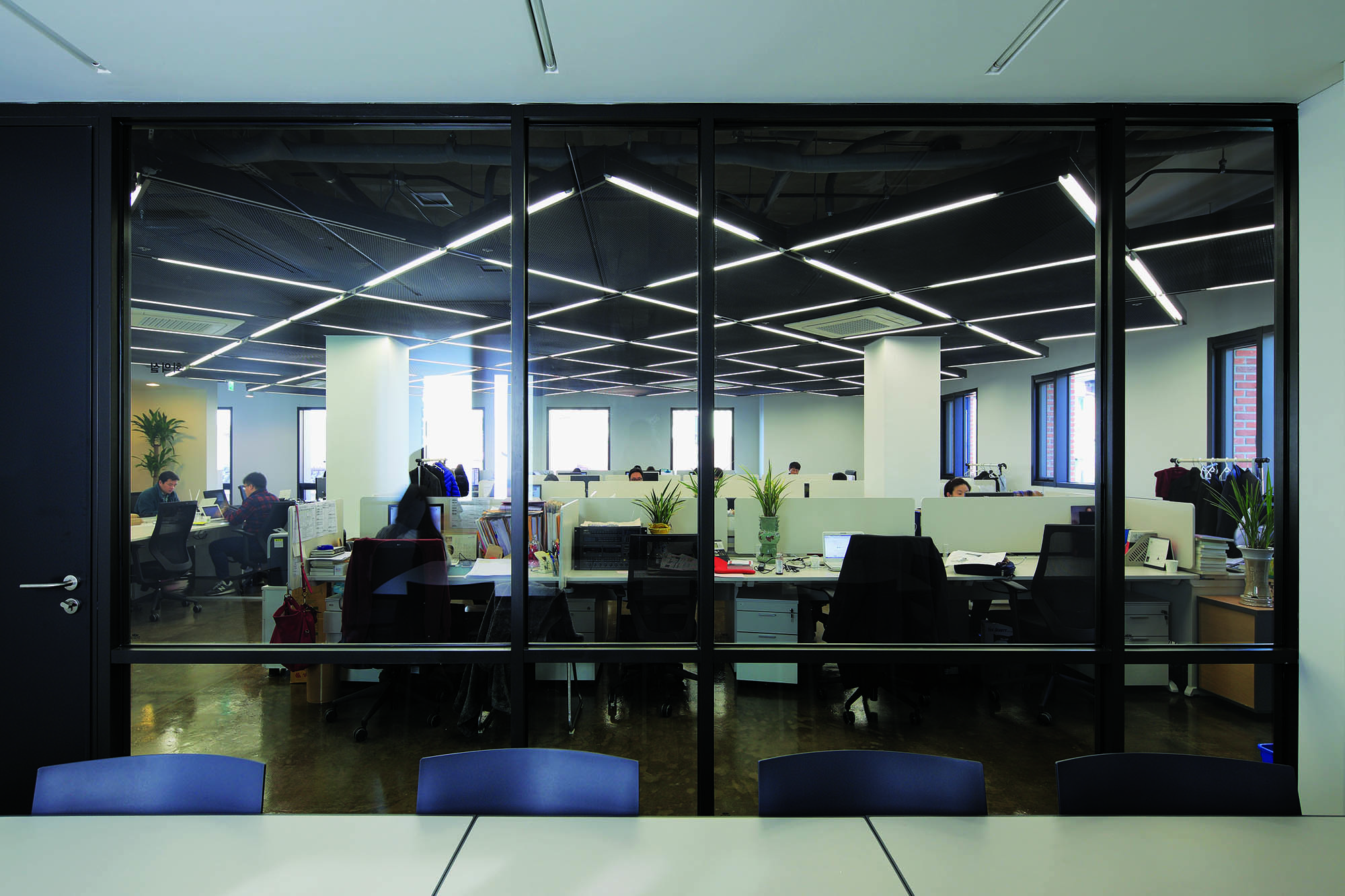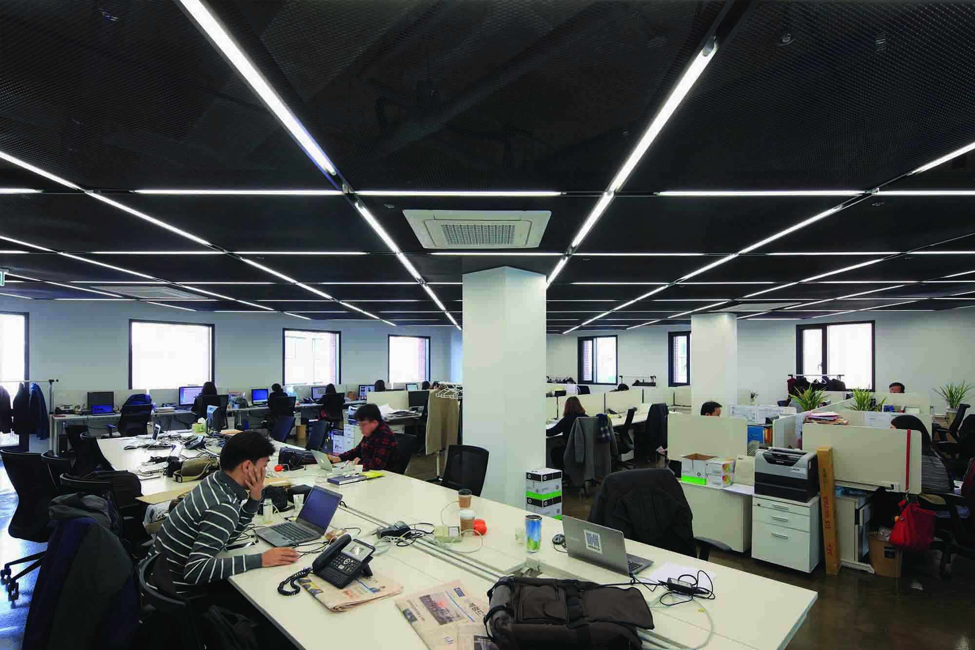 동선의 변화에 이어 두번째는 신문사 업무 행태와 공간의 변화였다. 취재, 편집, 전산 제작 등 일련의 업무과정에는 변화가 없지만, 고정적인 자리보다는 카페에서 작업하듯 외근 중심으로 작업할 수 있게 제안하였다. 좌석과 조명의 배치에서도 조직의 위계를 공간이 강요하지 않는 개방형 배열이고자 했다. 또한, 일련의 업무의 모습이 외부에서도 쉽게 보이도록 하여 블라인드가 없는 투명유리창과 단순한 외관 형태를 유지하였다.