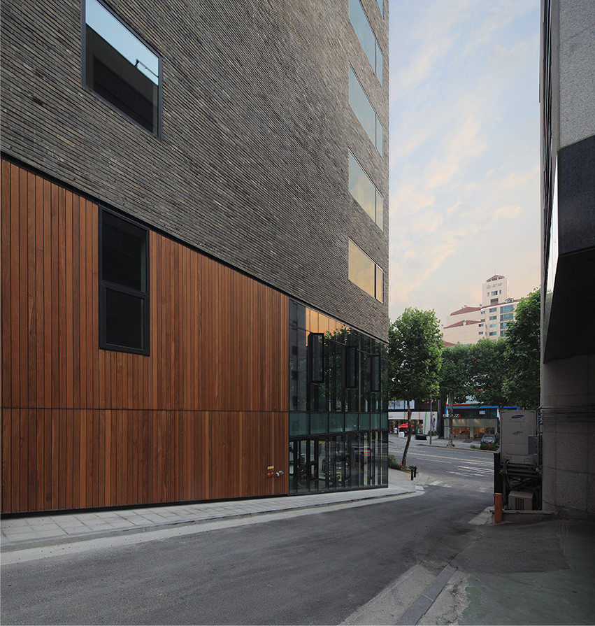 붉은벽돌은 상대적으로 무난하게 적용 가능하나 회색벽돌은 주변환경에 어울리기 쉽지 않은 재료이다.