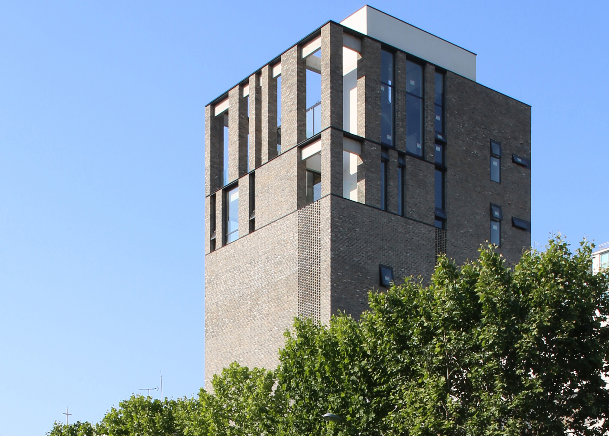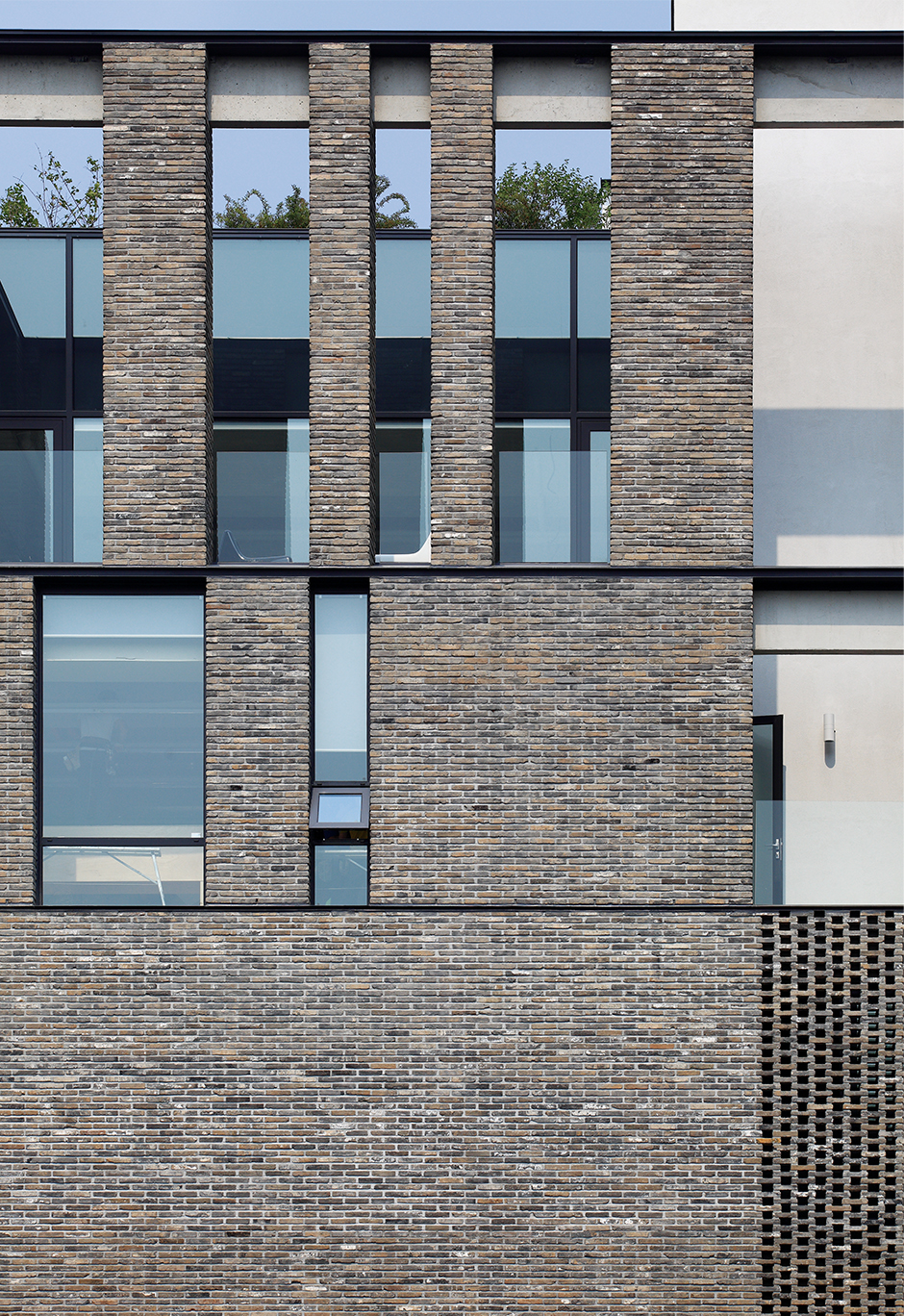 붉은벽돌은 상대적으로 무난하게 적용 가능하나 회색벽돌은 주변환경에 어울리기 쉽지 않은 재료이다.