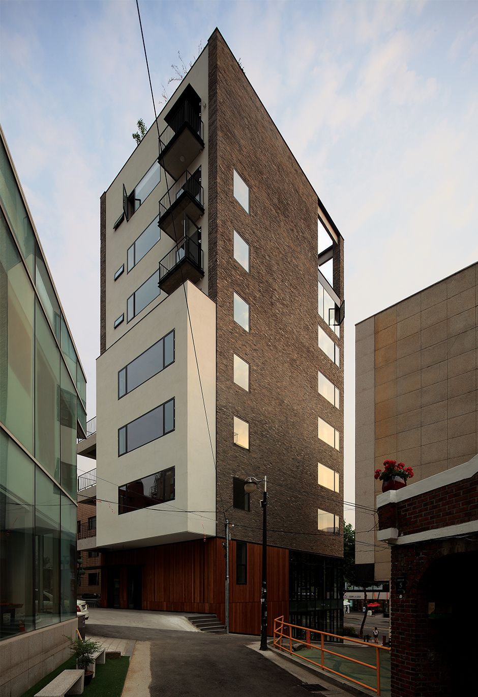 따라서 대부분의 층은 임대를 고려한 명료한 공간으로 계획하고 상부 2개층에 다른 가능성을 부여하였다.